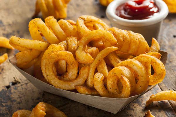 Curly Fries are spiral-cut potatoes that are coated in seasoned flour and deep-fried.